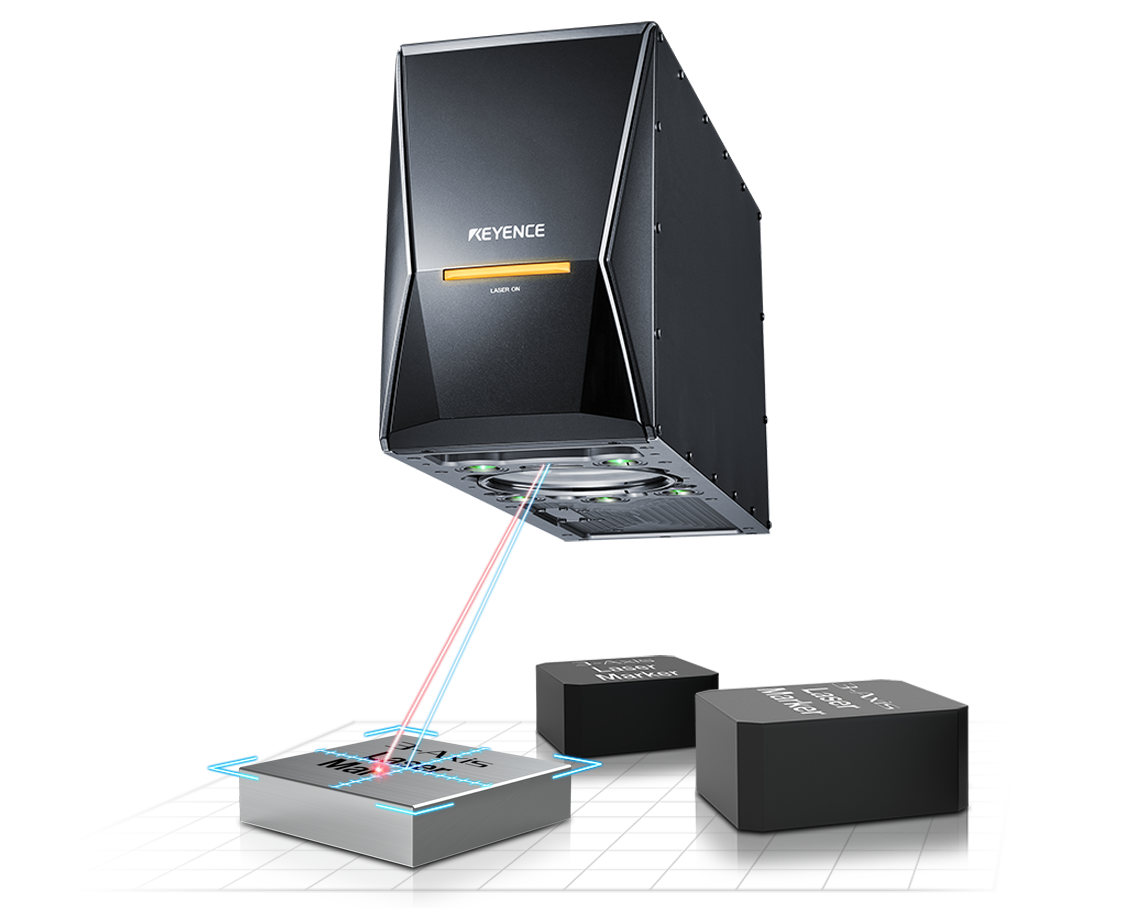 UV雷射(波長 355 nm)具有對各類材料極高吸收率的特性。針對以往使用基本波長(1,064 nm)的雷射刻印機,容易產生熱影響或在某些材質上辨識度不佳的情況,UV雷射刻印機能實現(xiàn)高顯色、無損傷的精細刻印與加工。此外,搭配刻印頭內建的測距感測器與多功能CAMERA,可自動補正與目標物之間的距離偏移及搬運過程中的位置偏移。並且透過雷射輸出監(jiān)控與窗口髒污檢測,預防刻印不良,實現(xiàn)穩(wěn)定運行。