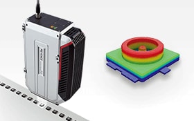 使用光切法的雷射位移計(jì)(2D、3D)。以線型雷射光照射目標(biāo)物表面,再以CMOS接收其反射光的變化,以非接觸形式量測(cè)高度、高低差、寬度、平面度等輪廓(截面形狀)。對(duì)連續(xù)取得之輪廓資料進(jìn)行影像處理,取得3D形狀,實(shí)現(xiàn)高精度量測(cè)與全檢。而且,KEYENCE的全新自動(dòng)掃描3D感測(cè)器能夠在短短零點(diǎn)幾秒內(nèi)對(duì)靜止目標(biāo)物進(jìn)行高精度的3D外觀檢查,使其能在更多情況下進(jìn)行檢查。