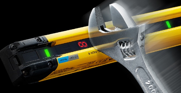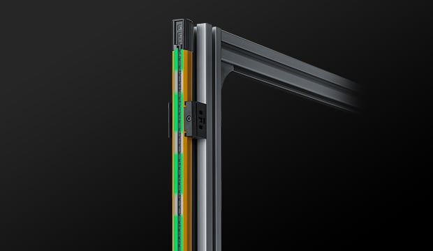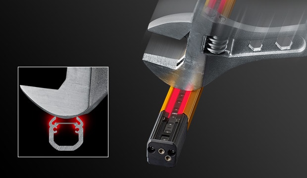 安全光柵GL-V 系列搭載大型線狀指示燈,僅靠本體即可清楚顯示狀態(tài)。當(dāng)入光時(shí)顯示綠色,遮光時(shí)顯示紅色,即使從遠(yuǎn)處也能一眼辨識光柵是否遮光,有助於迅速復(fù)原作業(yè)。此外,透過顯示模式還可確認(rèn)受光量降低或錯(cuò)誤狀態(tài),便於及早採取對策。GL-V 系列可廣泛應(yīng)用於設(shè)備啟動(dòng)、調(diào)整與運(yùn)轉(zhuǎn)階段。雖然尺寸僅為22 mm × 22 mm,卻具備約3 mm 厚的堅(jiān)固外殼結(jié)構(gòu),展現(xiàn)高耐用性。重新設(shè)計(jì)的內(nèi)部光學(xué)構(gòu)造更支援最長15 公尺的檢測距離。