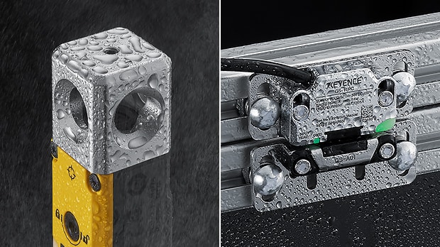 安全門感測器/安全門開關(guān),是用來確認(rèn)安全門或保護(hù)蓋等可動式防護(hù)遮罩的開關(guān)狀態(tài)用的安全裝置?!窯S系列」安全門感測器分為鎖定型(GS-50/70)與非接觸型(GS-10);鎖定型又分為機(jī)械鎖定式(GS-50)與電磁鎖定式(GS-70)。不同於一般機(jī)械式安全鎖,全新的「GS系列」不但機(jī)身輕巧,所有型號都結(jié)構(gòu)牢固並能於充滿水氣與油的環(huán)境中使用(對應(yīng)IP65/67/69K)。操作簡單、擁有高信賴性,不會降低生產(chǎn)現(xiàn)場作業(yè)效率,是可實(shí)現(xiàn)最高安全水準(zhǔn)的門感測器。
