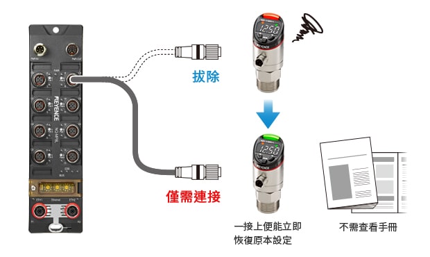 支援IO-Link網(wǎng)路通訊模組。大幅削減感測(cè)器的安裝、配線及設(shè)定的時(shí)間,並可完整獲取連接的感測(cè)器資訊。誰(shuí)都能輕鬆使用。