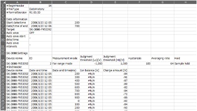 在靜電消除器的前後方安裝感測頭 SK-300,可依時序?qū)⒁蚰繕宋锘颦h(huán)境變化而產(chǎn)生的靜電消除效果記錄於 PC 中。此功能在設(shè)備導(dǎo)入、生產(chǎn)線變更或定期檢查等作業(yè)的驗證過程中,能發(fā)揮極大效用。